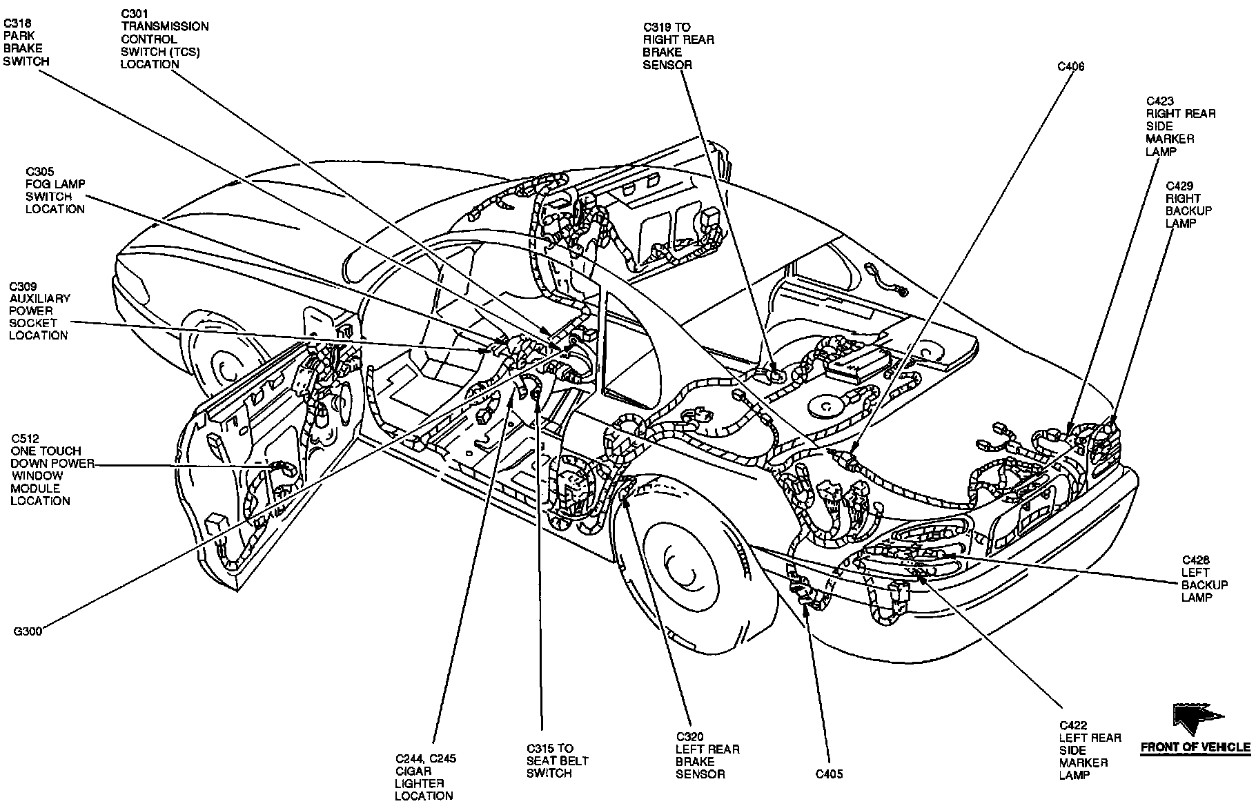 The One Touch Down Power Window Module is located at the lower rear of the LH door.