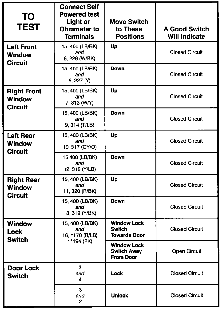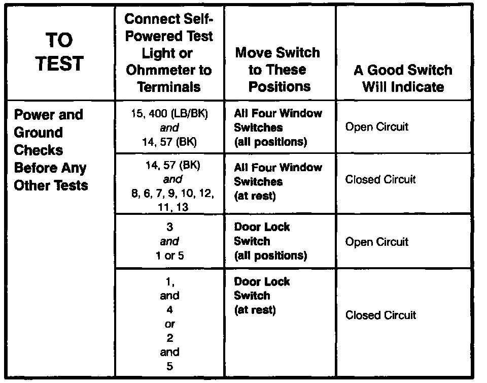 Master Window/door Lock Control Switch-Component Testing Procedure (Convertible):