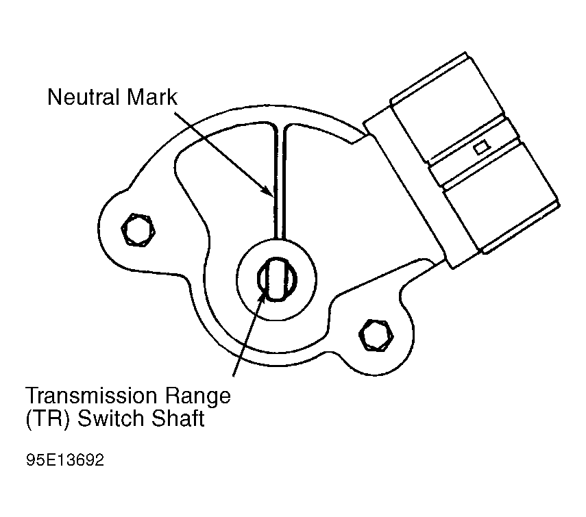 - Disconnect negative battery cable. Remove shift cable from manual control lever at TR switch. Disconnect TR switch harness connector. Rotate manual control lever to align with neutral mark on TR switch. See Fig 1.