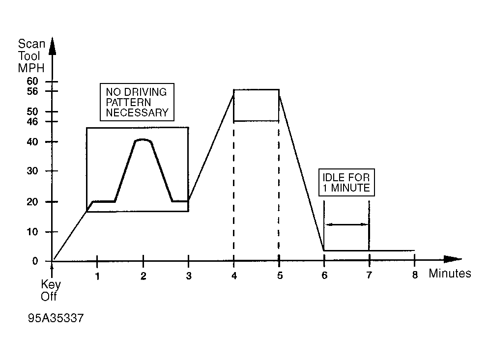 Ensure all accessories are off. Start engine and start to time Mode 2 cycle. Drive vehicle at any legal speed for 3 minutes, no special pattern is necessary.