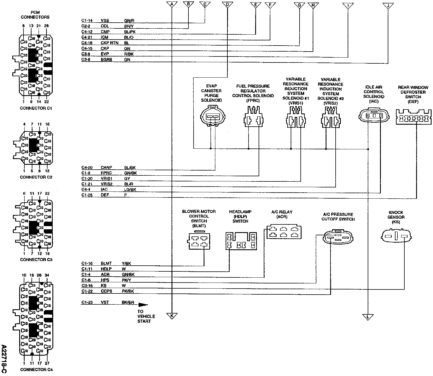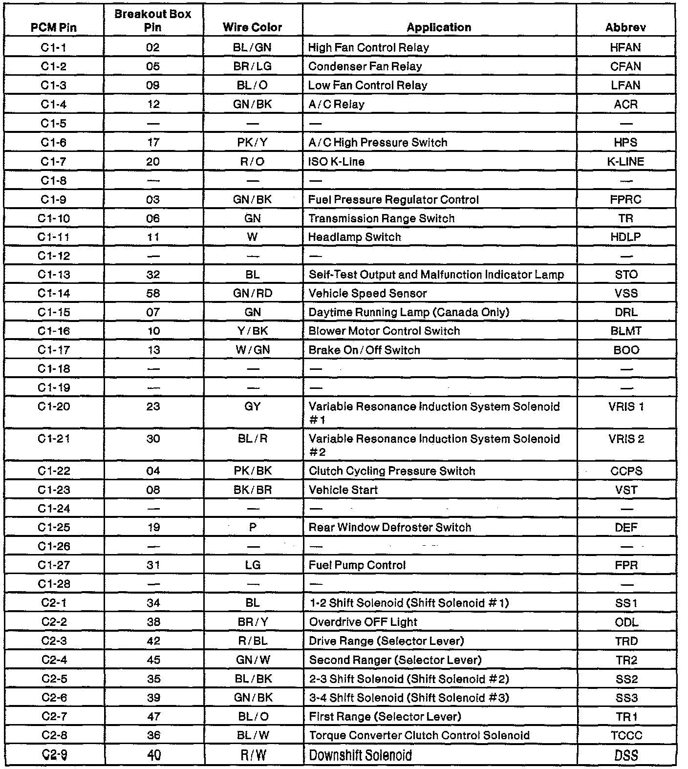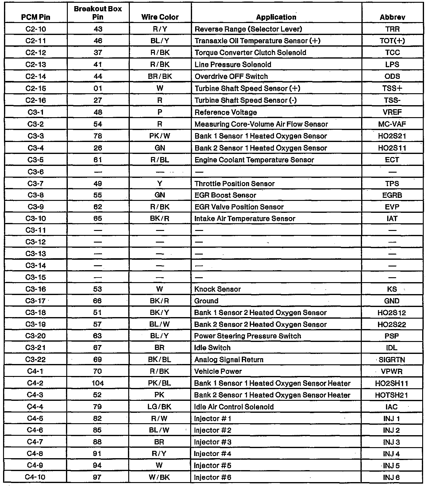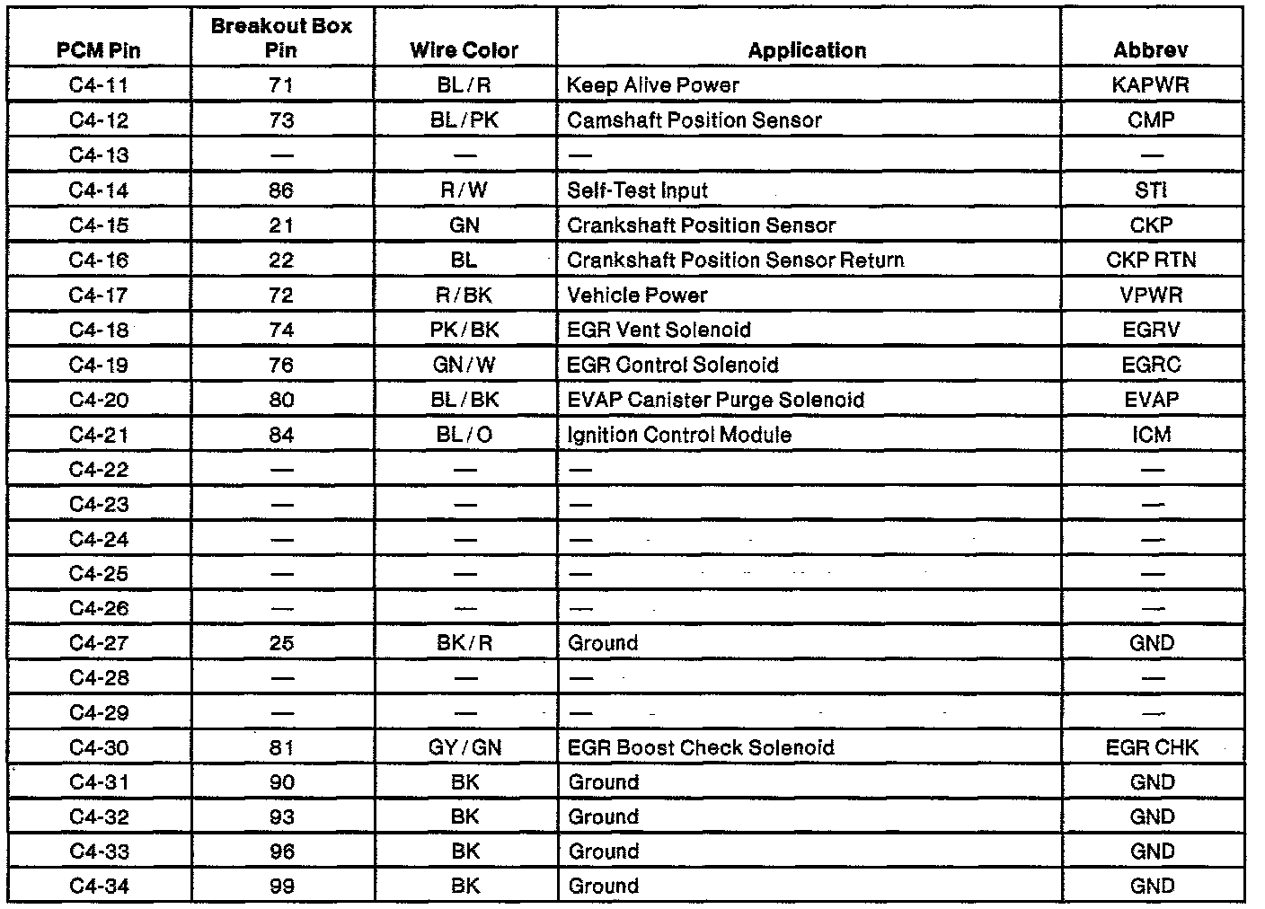 Powertrain Control Module (PCM) Connector Pin Usage: