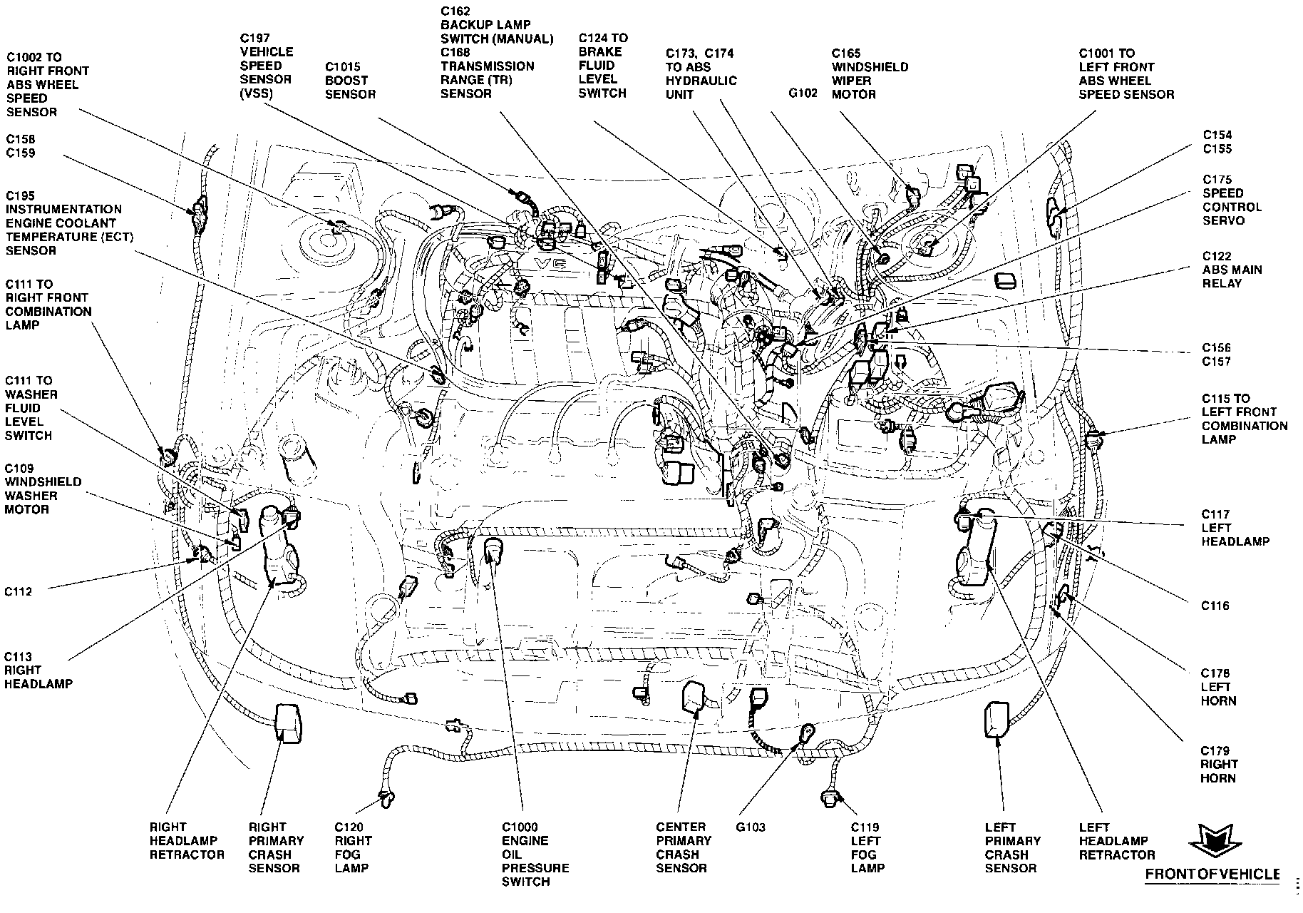The Transmission Range Sensor is located at the top front of transaxle.
