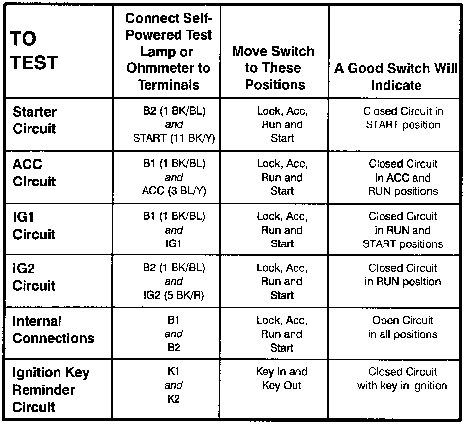Ignition Switch: Testing and Inspection