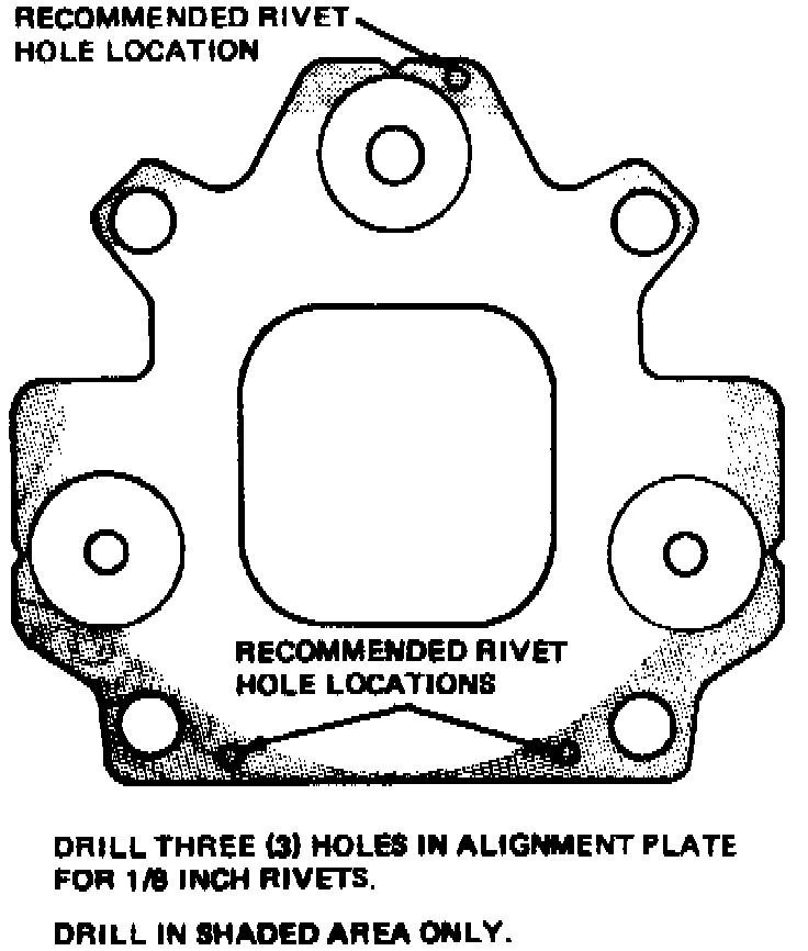8. Drill three 1/8 inch holes as indicated through alignment plates and strut towers, then paint exposed metal.