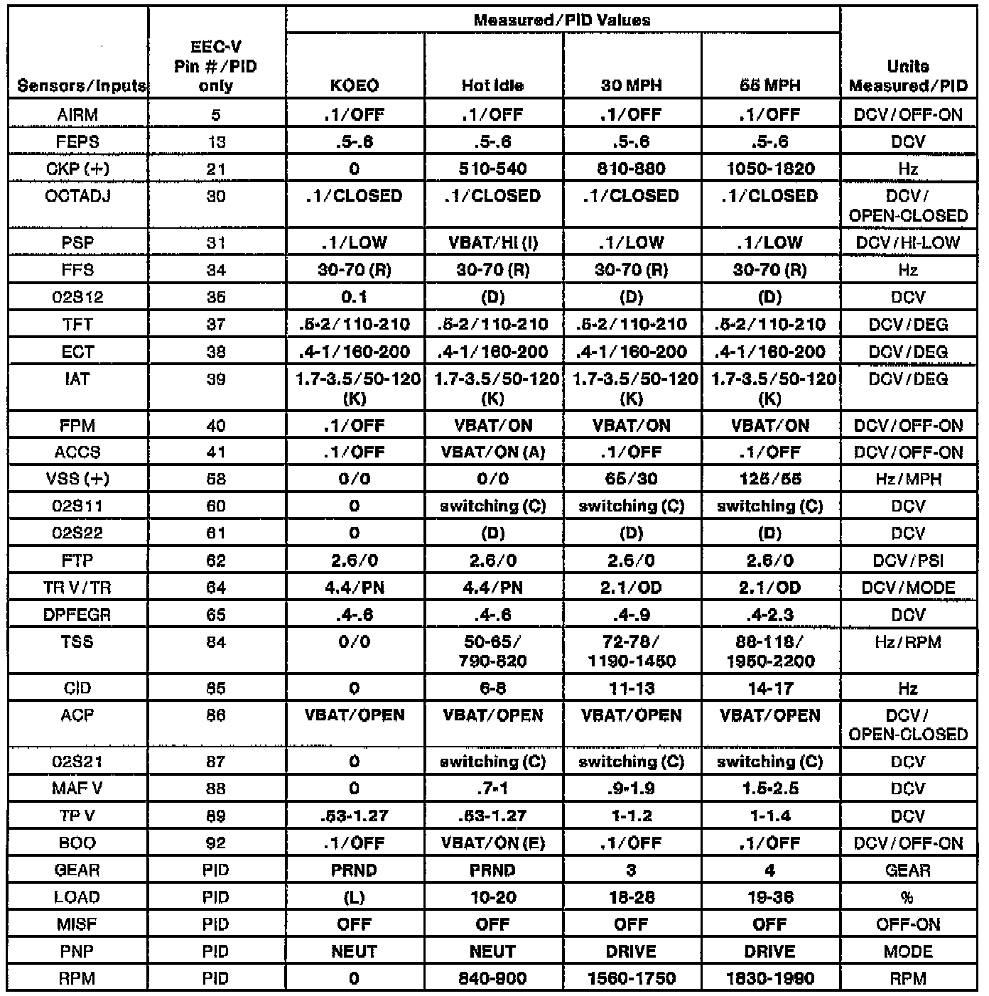 Home >> Ford >> 1996 >> Taurus V6-182 3.0L FF >> Repair and Diagnosis >> Powertrain Management >> Transmission Control Systems >> Testing and Inspection >> Scan Tool Testing and Procedures >> AX4N >> Normal Scan Data Values