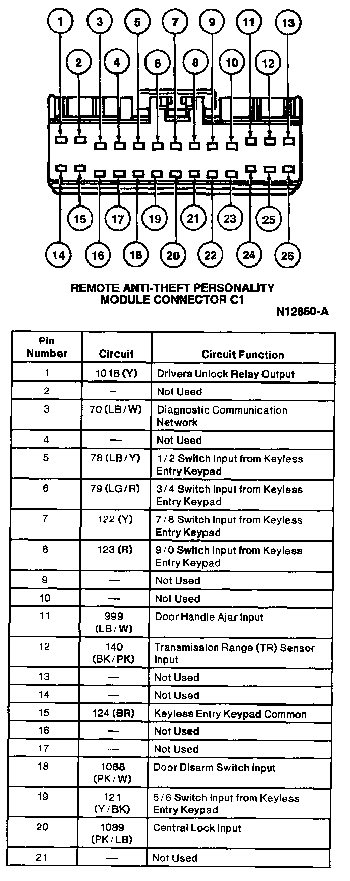Remote Anti-Theft Personality Module Connector C1 Part 2 Of 2: