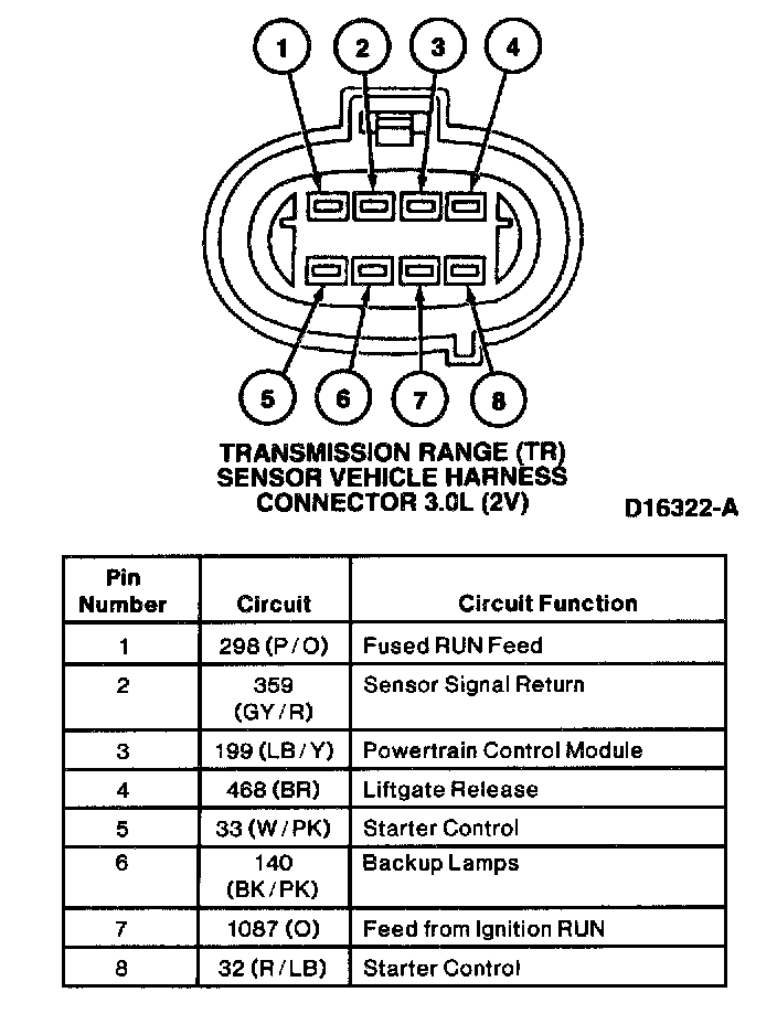 Transmission Range (TR) Sensor Vehicle Harness Connector: