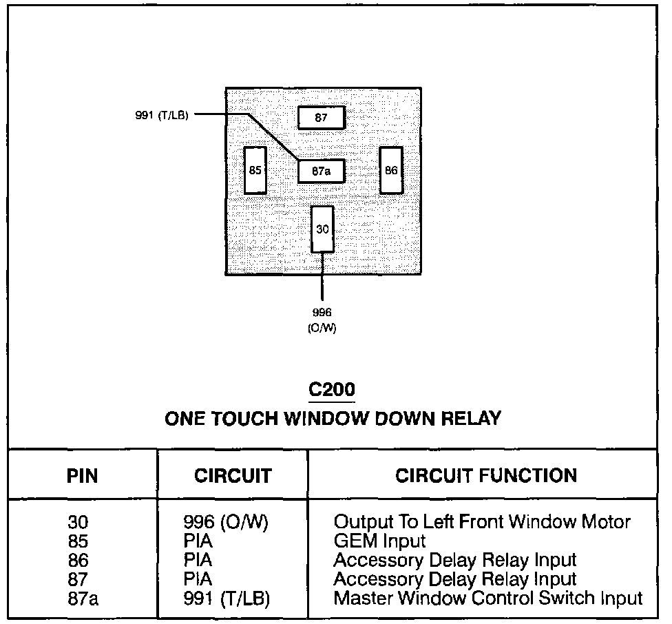 One Touch Window Down Relay: