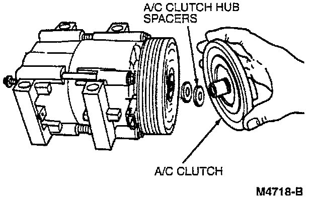 2. Pull the A/C clutch and the A/C clutch hub spacers from the A/C compressor shaft.