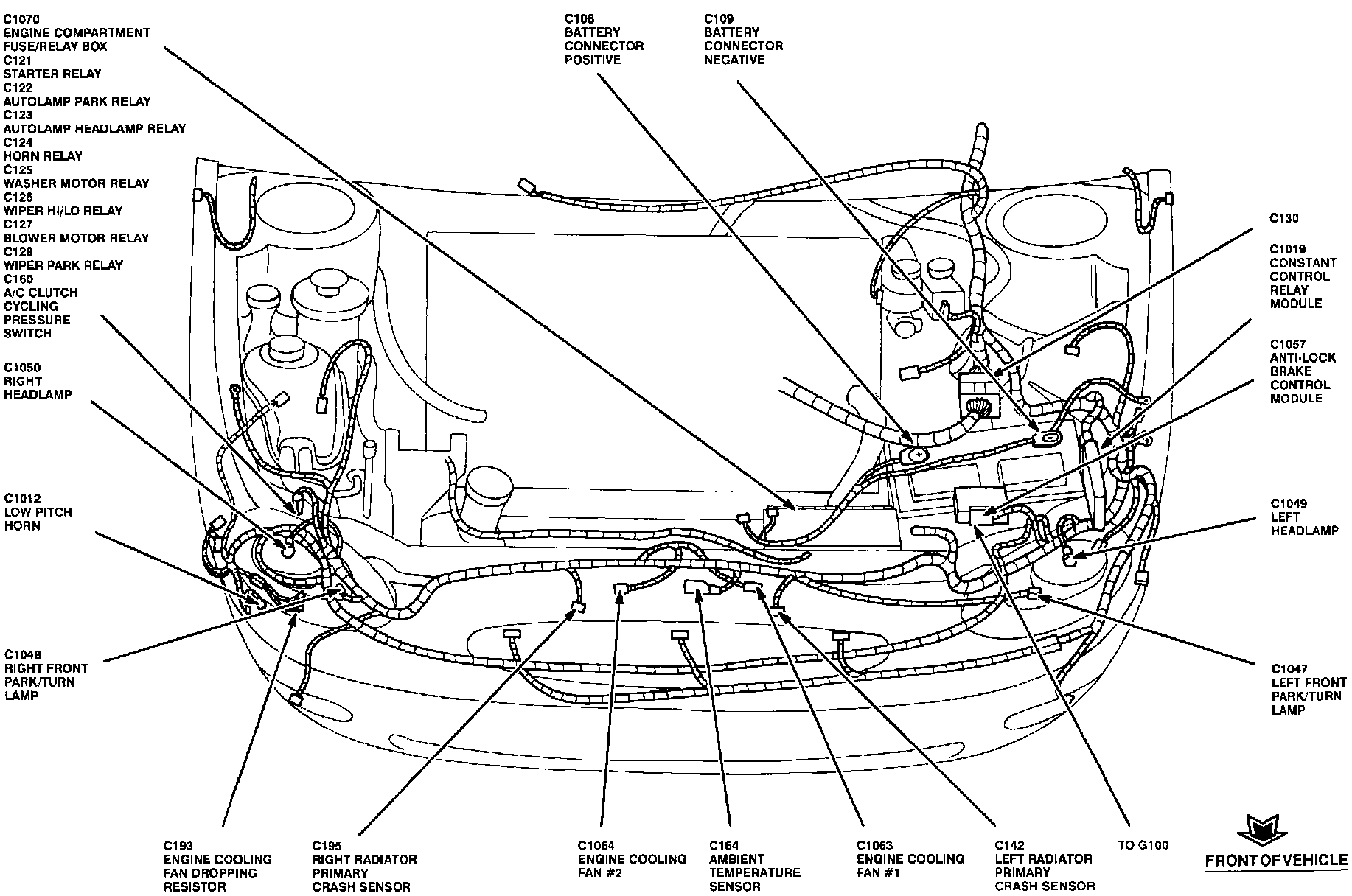 Home >> Ford >> 1996 >> Taurus V6-182 3.0L >> Repair and Diagnosis >> Locations >> Component Locations >> Engine Compartment Views