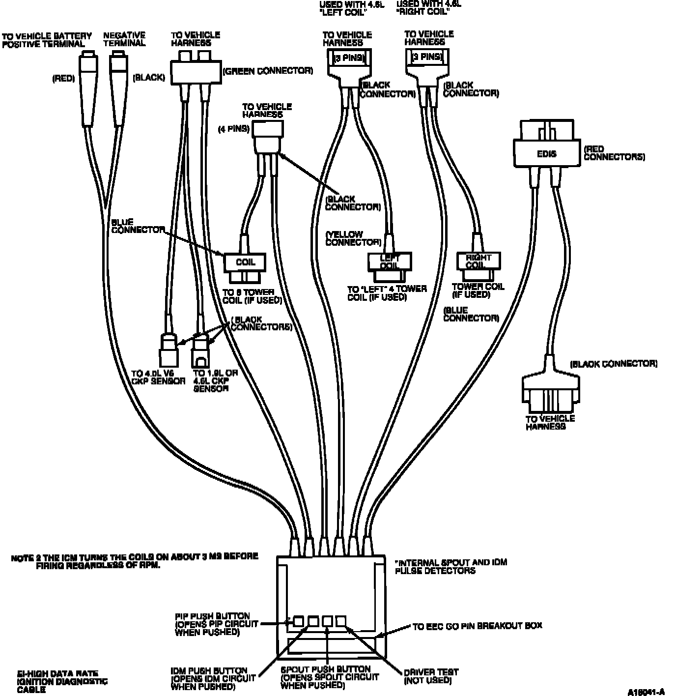 Electronic Ignition (EI) System Adapter (EDIS Systems Adapter) 007-00059 or equivalent. (Overlay and cable for use with 60-Pin Breakout Box only) Use Rotunda Breakout Box Overlay 007-00102