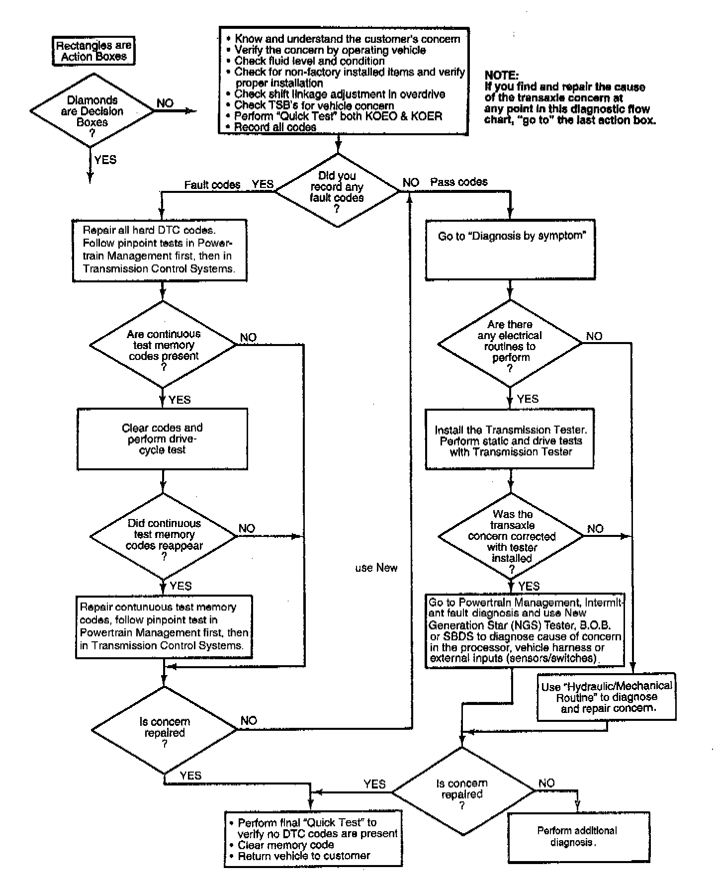 - Repair all NON-Transaxle codes FIRST.