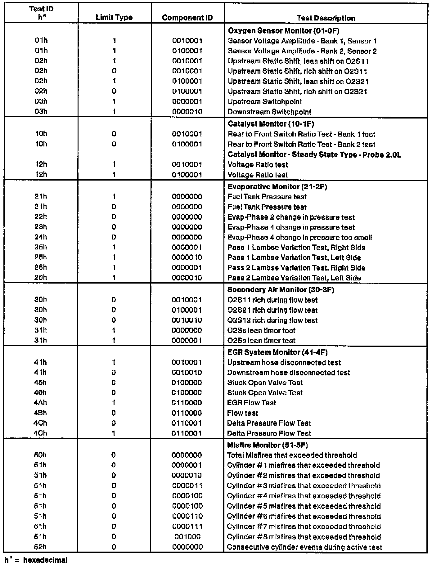 The purpose of the Diagnostic Monitor Test (mode 06) is to allow access to the results of OBD II Monitor diagnostic tests. The test values that are stored at the time of the particular monitor completion are displayed when the particular test identification is requested.