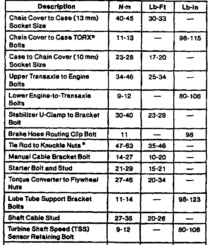 AX4N 4-spd A/T, Transaxle Torque (Taurus/Sable):