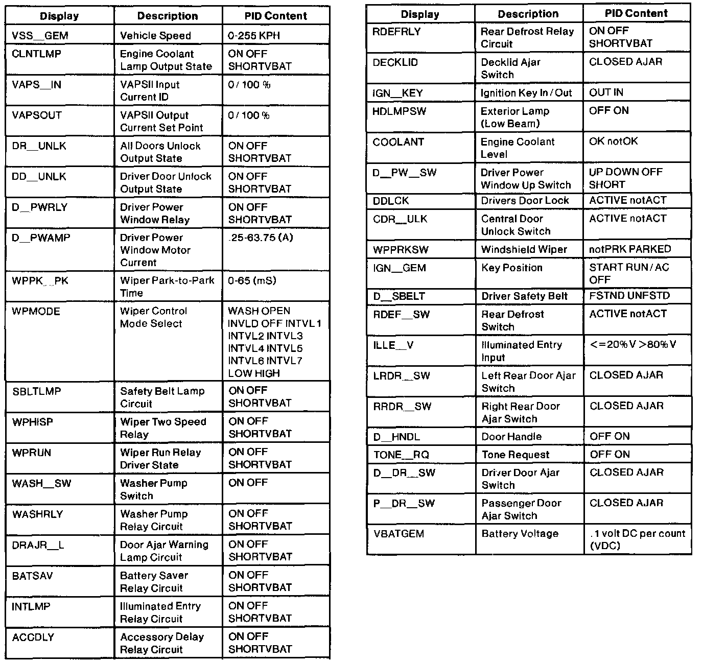 Diagnostic Trouble Code Descriptions