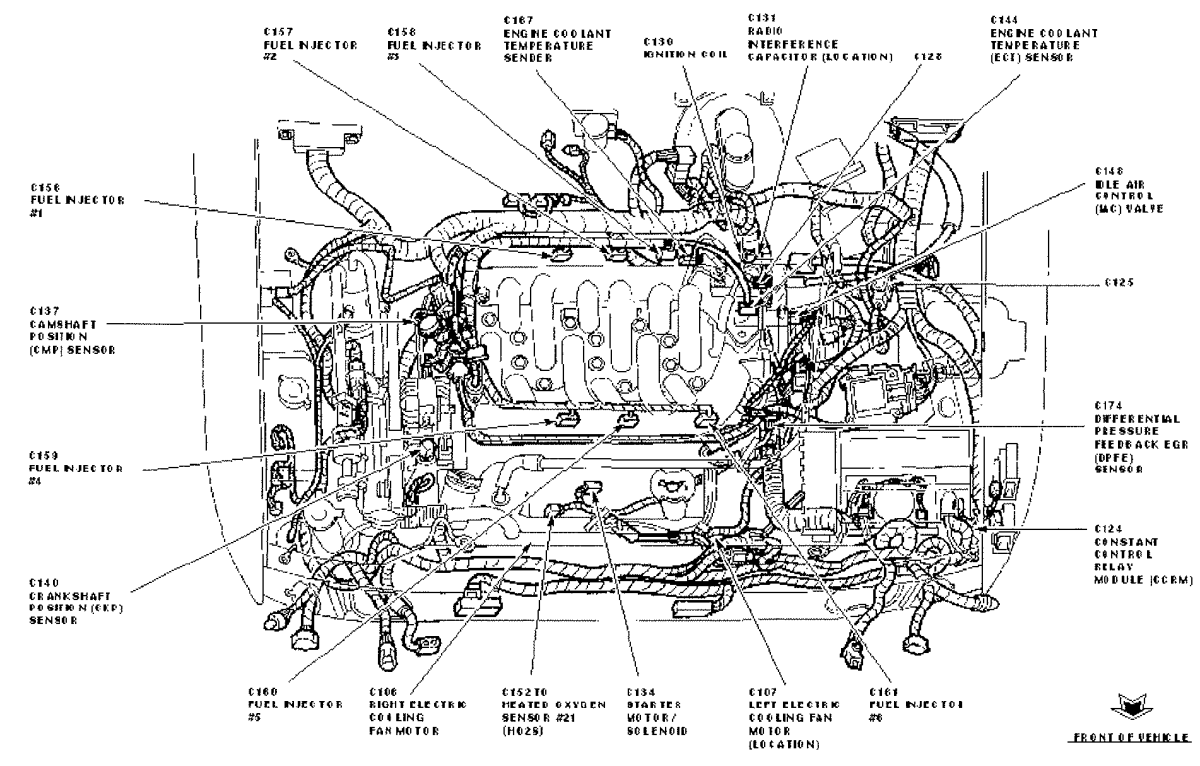 Fig 1: Locating Engine Compartment Electrical Components (3.8L)