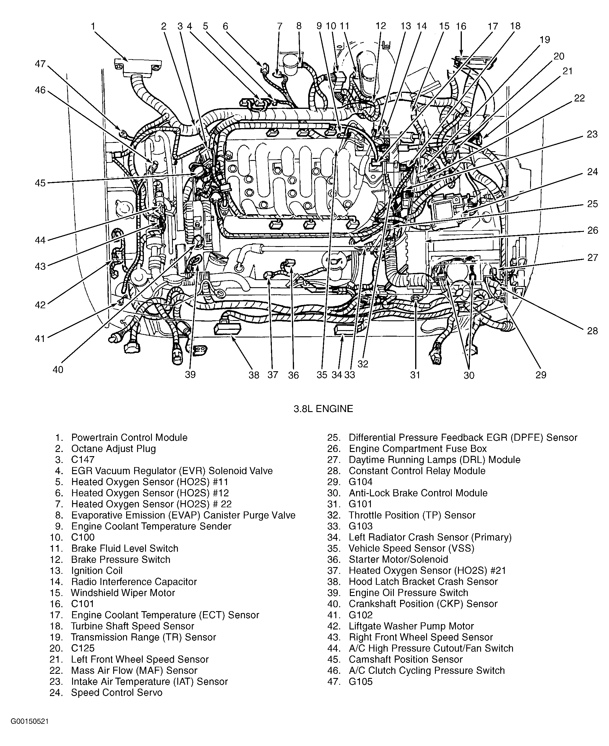 Daytime Running Lamps (DRL) Module (3.8L) At left front of engine compartment. See Figure .