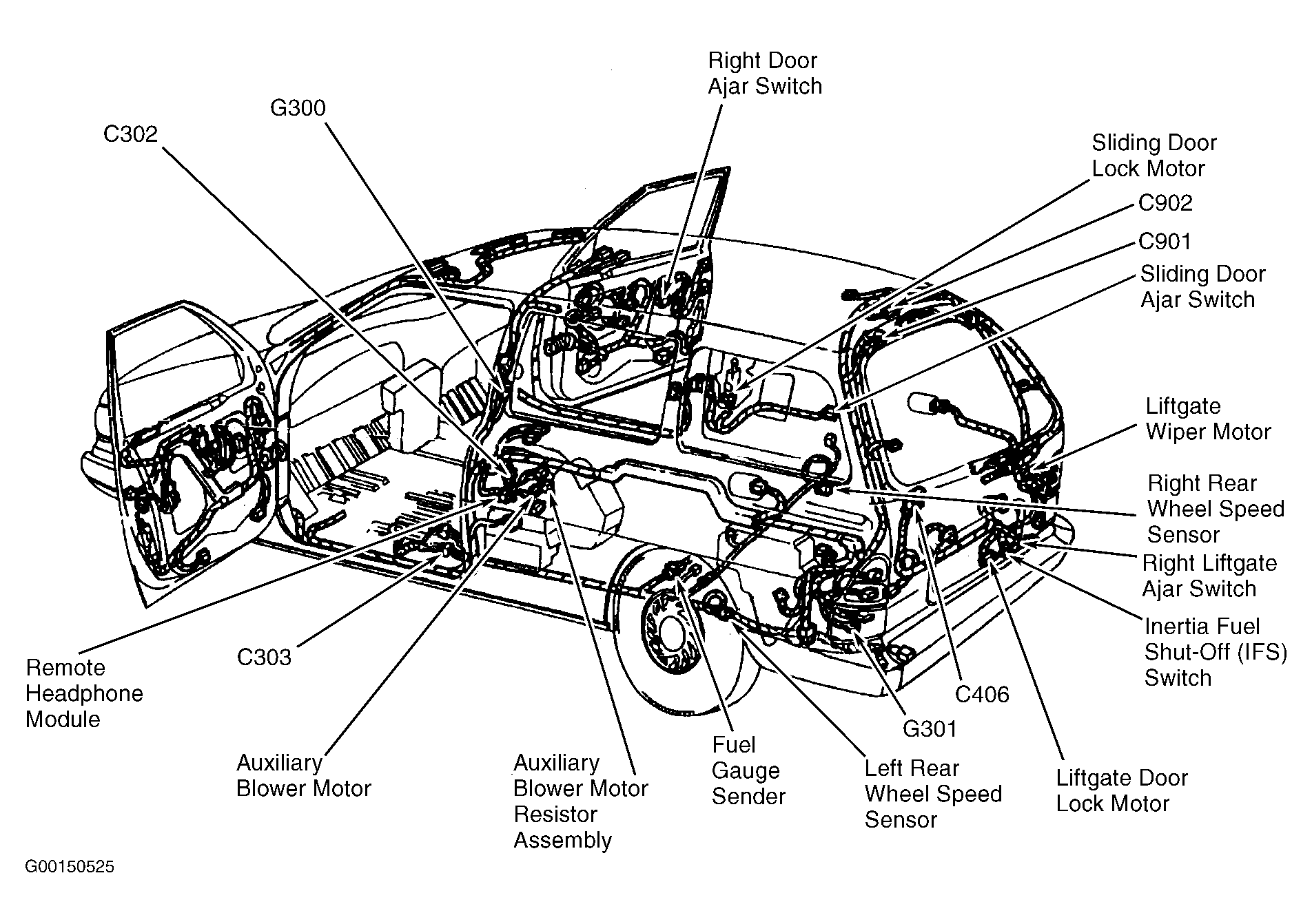 Remote Headphone Module Behind panel, left of rear seat. See Figure .