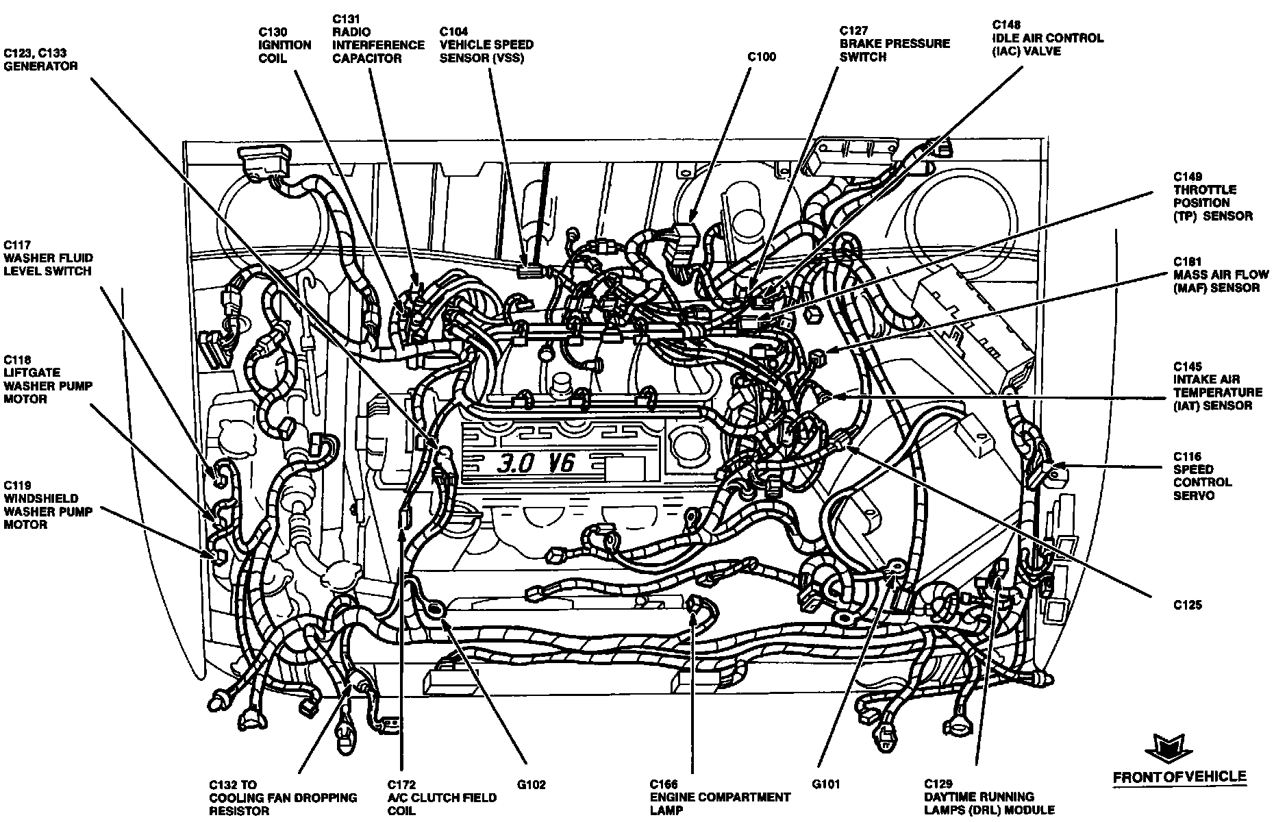The Vehicle Speed Sensor is located on transaxle, rear of engine