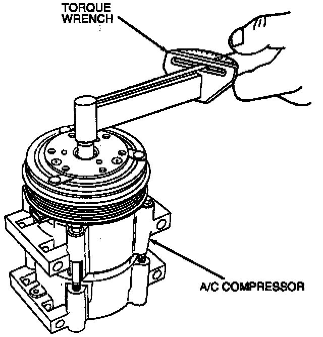 4. If the rotational torque exceeds 10 N.m (7 Lb-Ft) replace the A/C compressor.