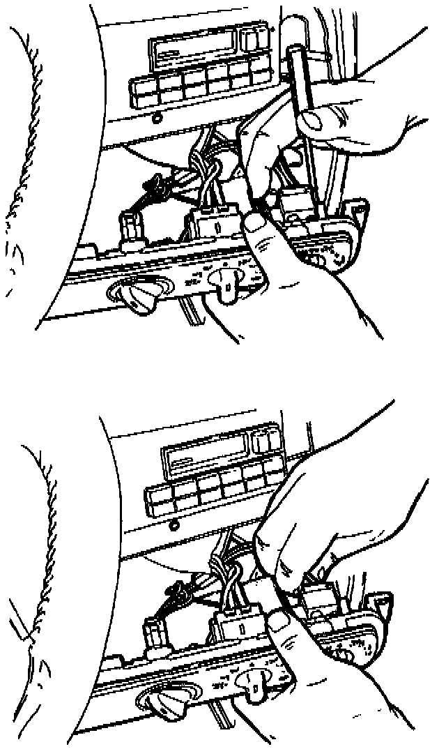 2. Remove instrument panel ash receptacle by depressing service lever and pulling assembly outward.