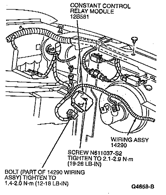 3. Remove upper screw retaining [1][2]constant control relay module.
