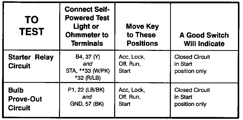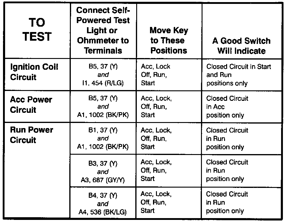 Ignition Switch - Component Testing Procedure (Part 2 Of 2):
