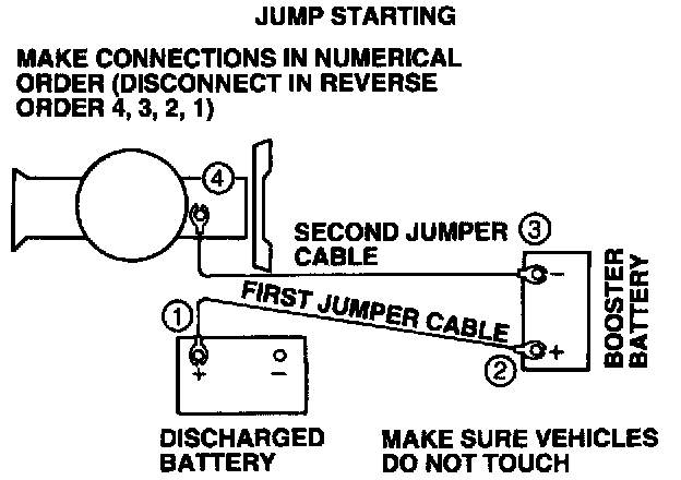 - MAKING THE FINAL CABLE CONNECTION COULD CAUSE AN ELECTRICAL SPARK NEAR THE BATTERY AND COULD CAUSE AN EXPLOSION. REFER TO WARNING AT THE BEGINNING OF THE JUMP STARTING PROCEDURE.