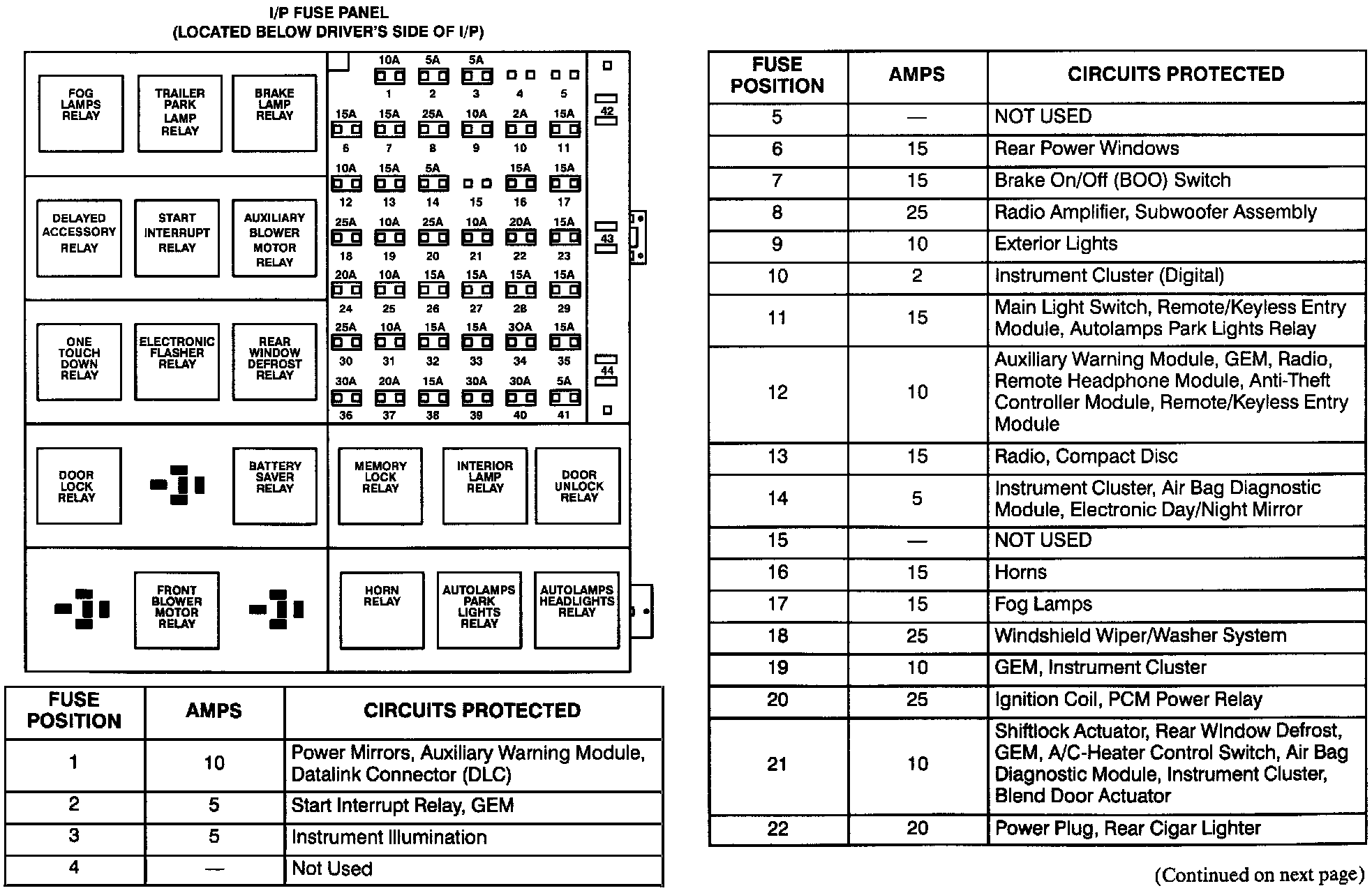 Instrument Panel Fuse Panel (Part 1 Of 2):