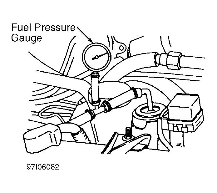 - If fuel pressure is within specification, test is complete. If fuel pressure is not within specification, check fuel filter and lines for restriction(s). Repair or replace as necessary. If fuel pressure is still not within specification, install fuel pressure gauge (if removed).CAUTION: Inspect fuel system for leaks or damage before testing fuel pump.