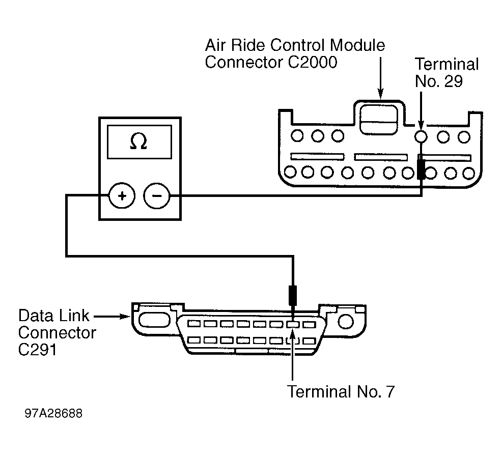1. Turn ignition off. Disconnect Gray Air Ride Control (ARC) module connector C2000 located left center of instrument panel. See Fig 1. Inspect ARC module connector C2000 for physical damage, bent te rminals or corrosion. Repair or replace connector as necessary and retest system. If connector is okay, go to next step.