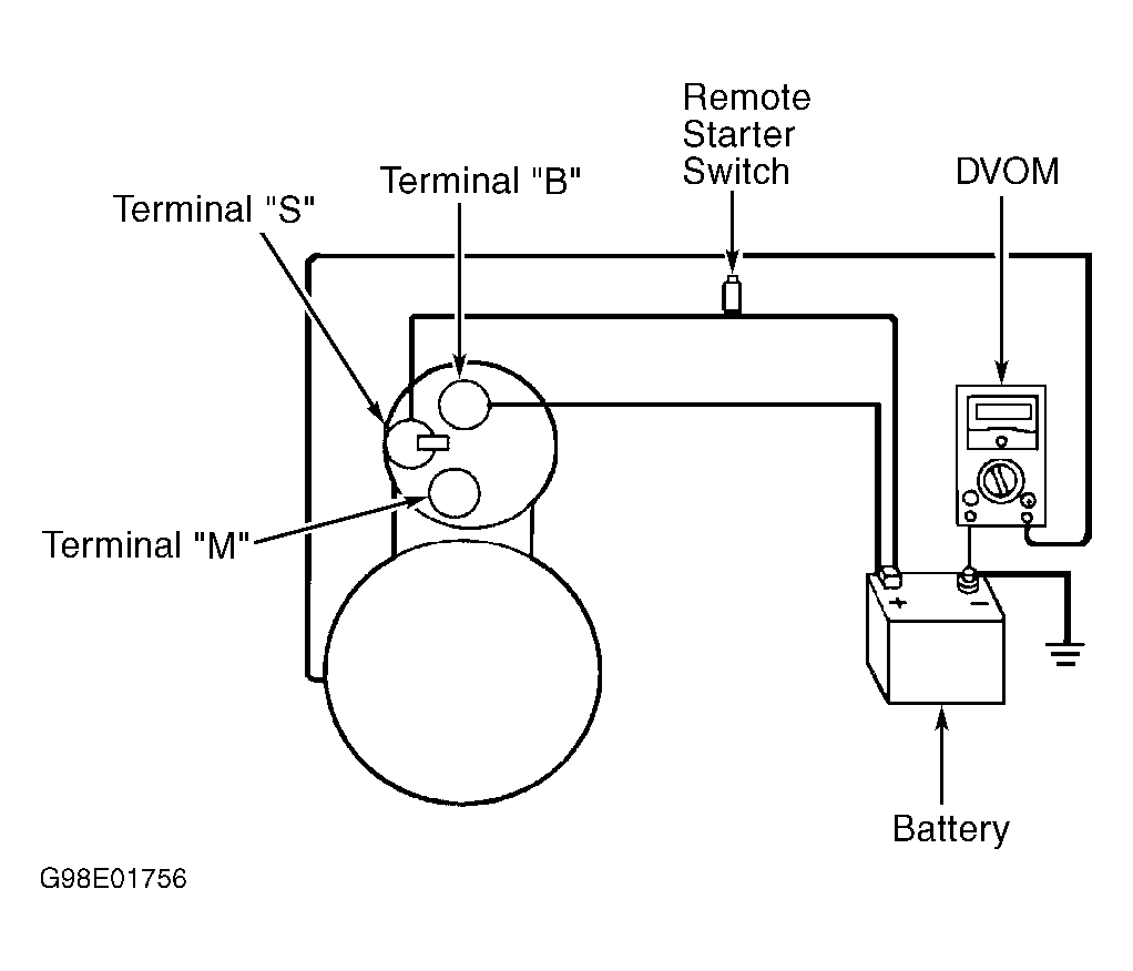 - Engage remote starter switch while observing voltmeter. Voltmeter should indicate .2 volt or less. If voltmeter indicates more than .2 volt, clean negative cable connections at battery and chassis. Also clean engine ground cable connections at front cover and engine mount bracket.