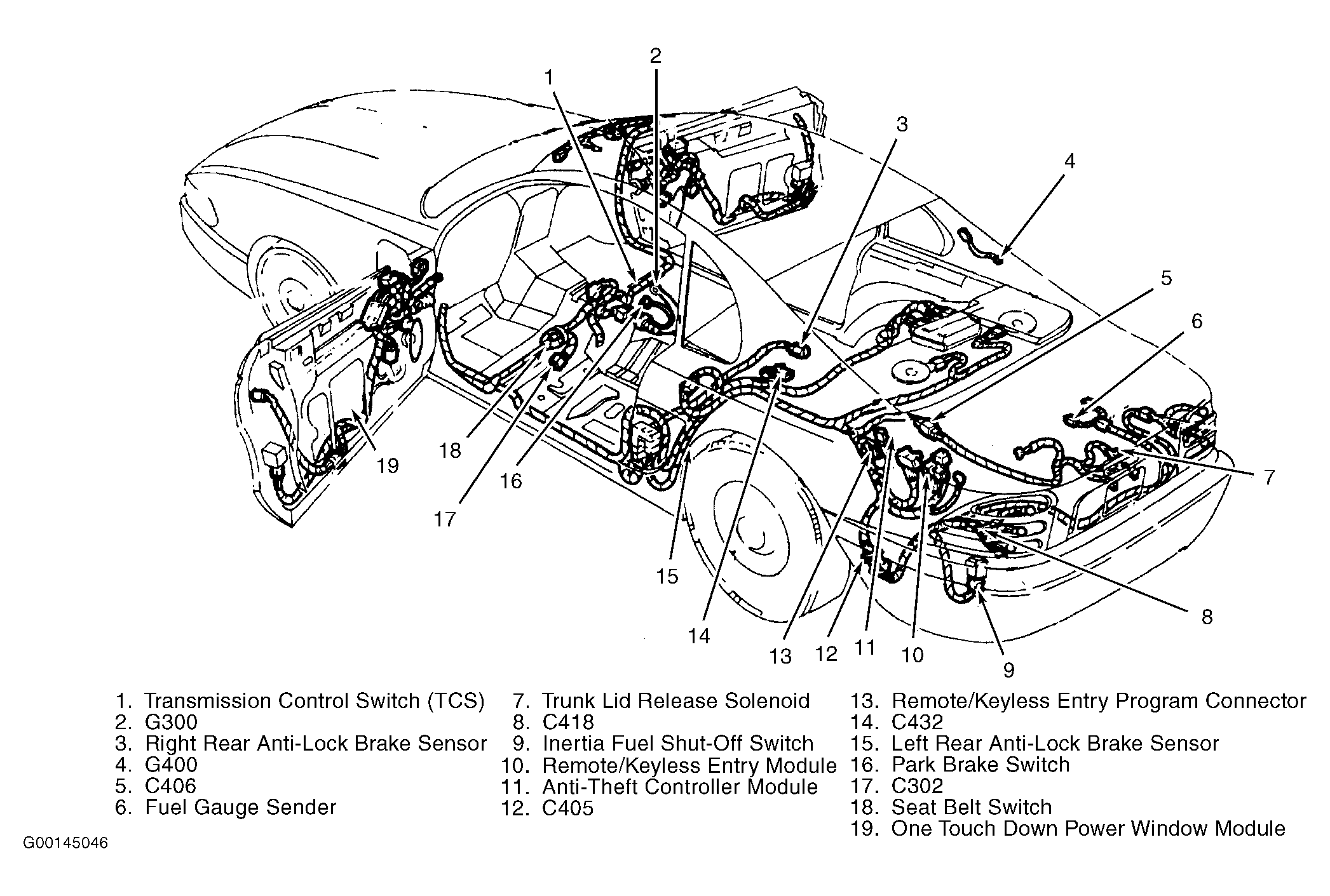 | Anti-Theft Controller Module | In left rear of trunk, behind trim panel. See Figure. |