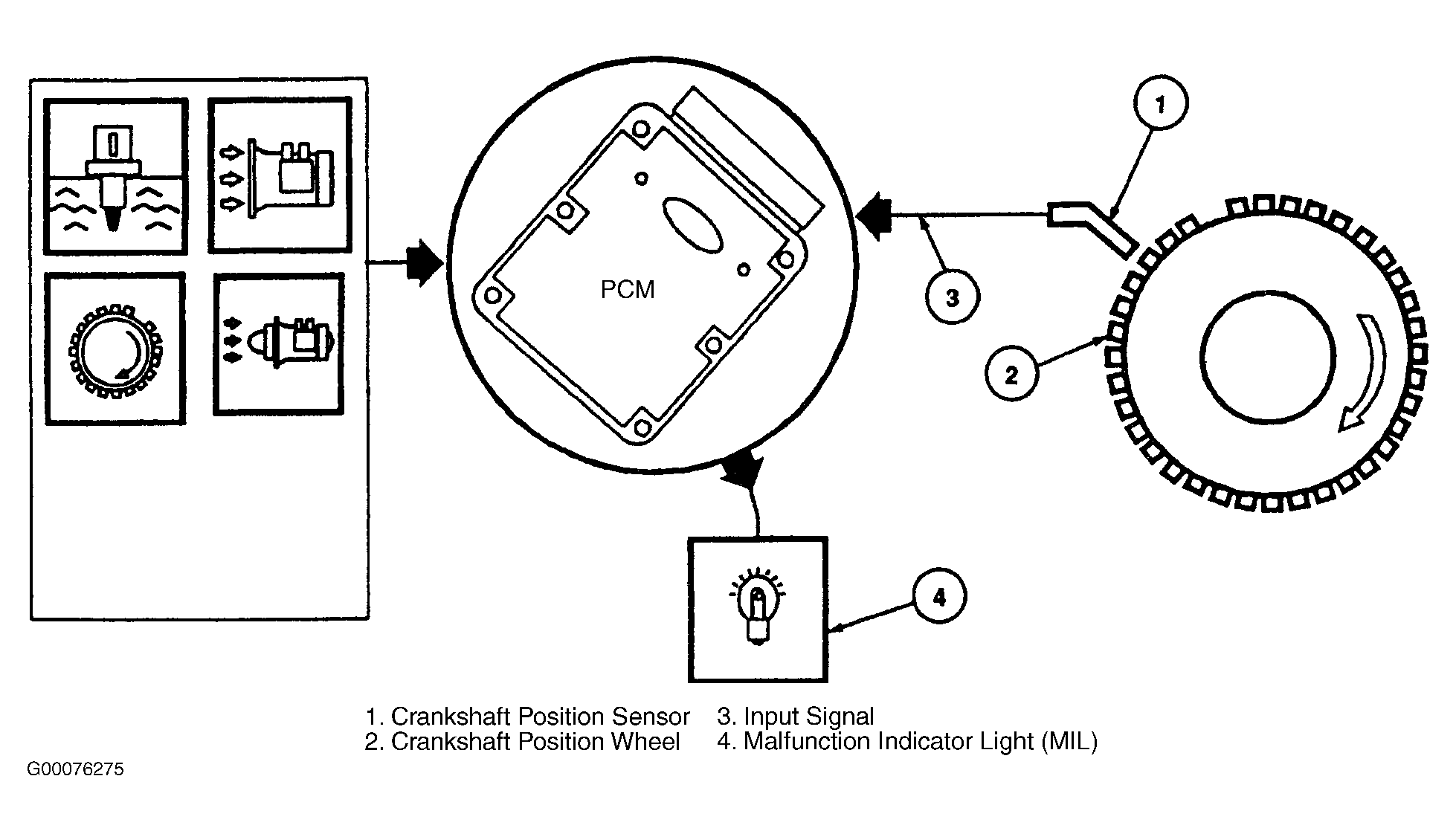 1. The PCM synchronized ignition spark based on information received from the CKP sensor. The CKP signal generated is also the main input used in determining cylinder misfire.