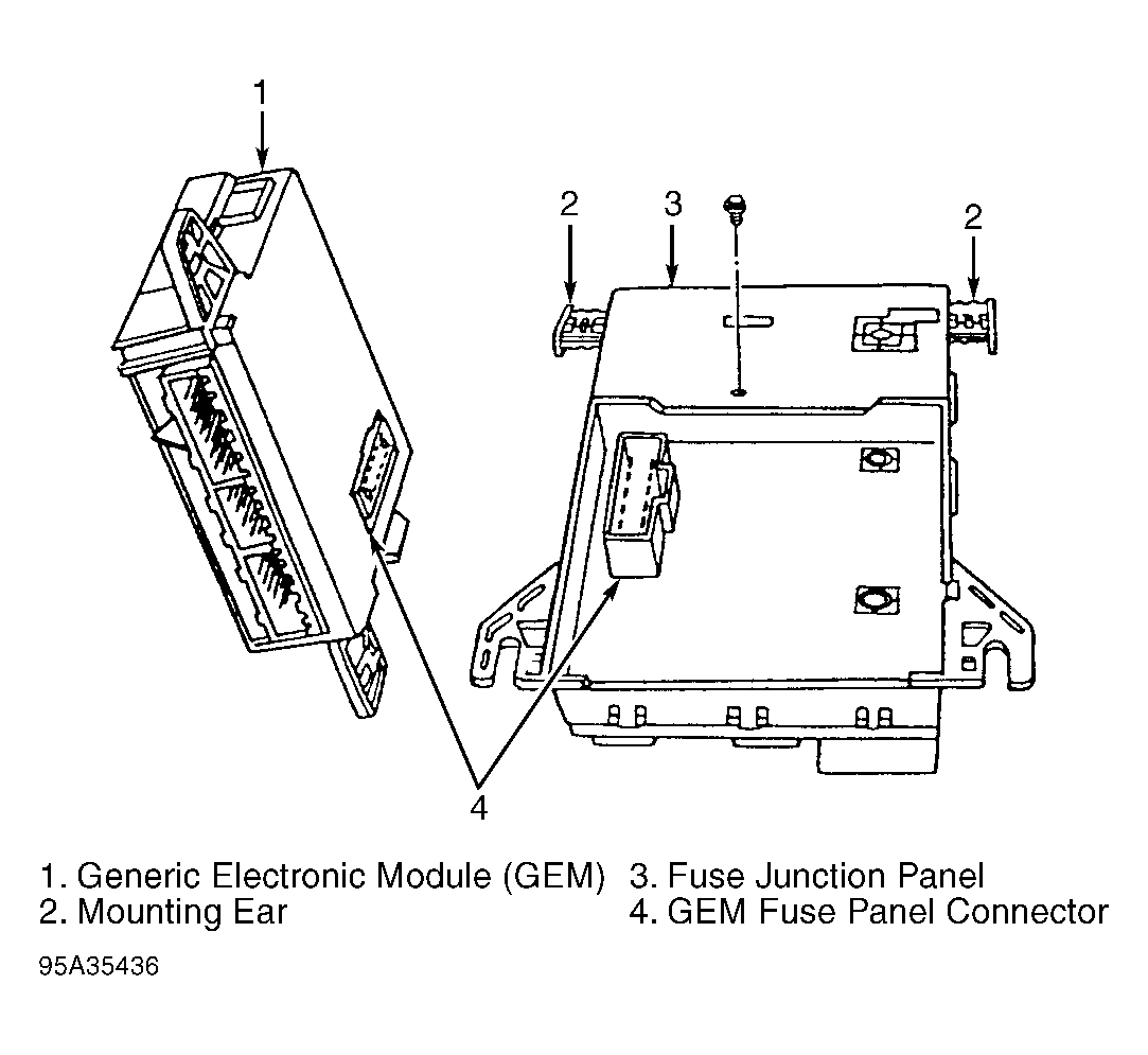 - Remove GEM from fuse junction box. See Fig 2 . Disconnect and reconnect ohmmeter as in step 1). If resistance is more than one M/ohm (may drop steadily to less than 3 k/ohms), replace GEM and retest. If resistance is not more than one M/ohm, go to next step.