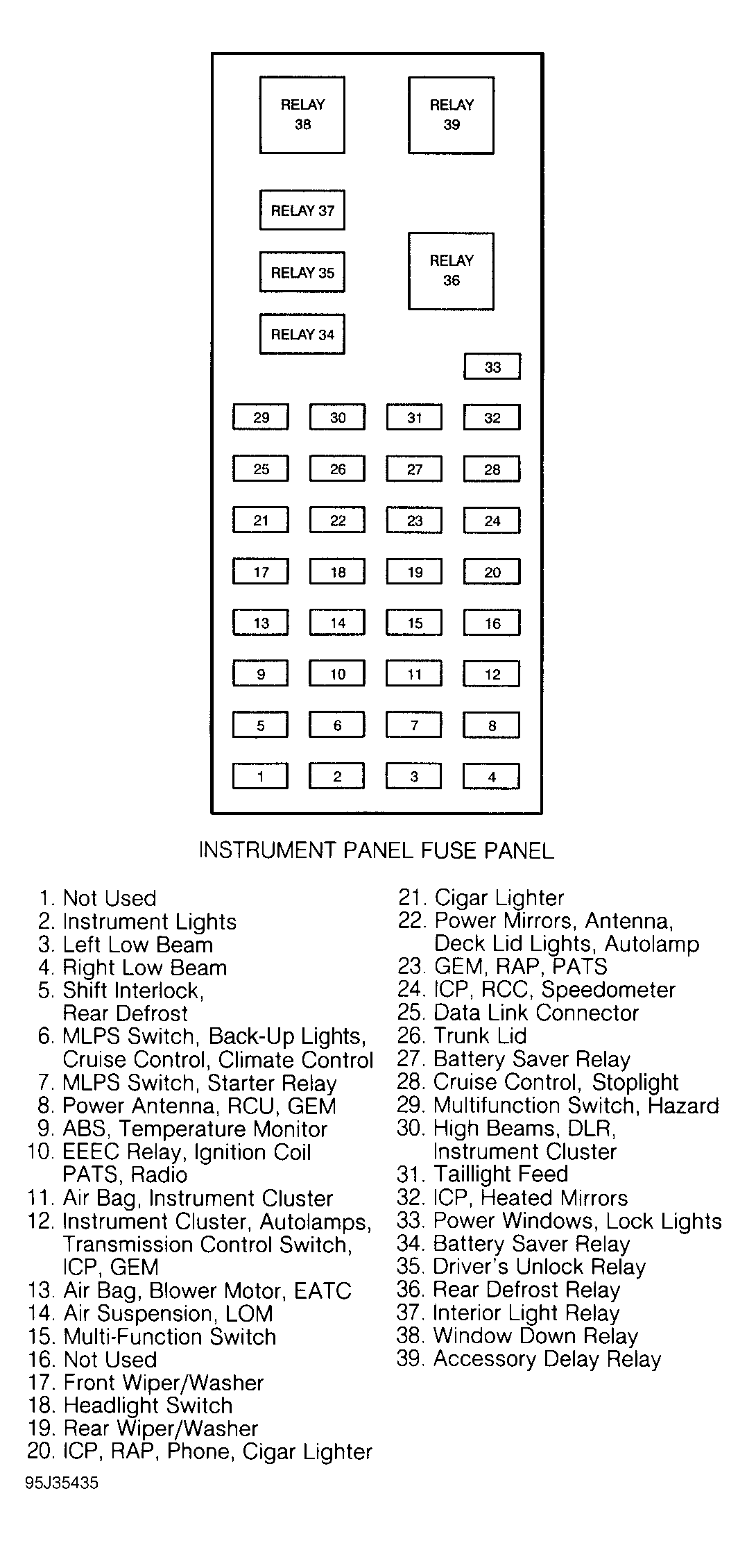 - Remove fuse No. 12. See Fig 1 . Measure resistance across fuse. If fuse tests okay, repair circuit No. 640 (Red/Yellow wire) for open and retest. If fuse is blown, repair circuit No. 640 (Red/Yellow wire) for short to ground, replace fuse and retest.