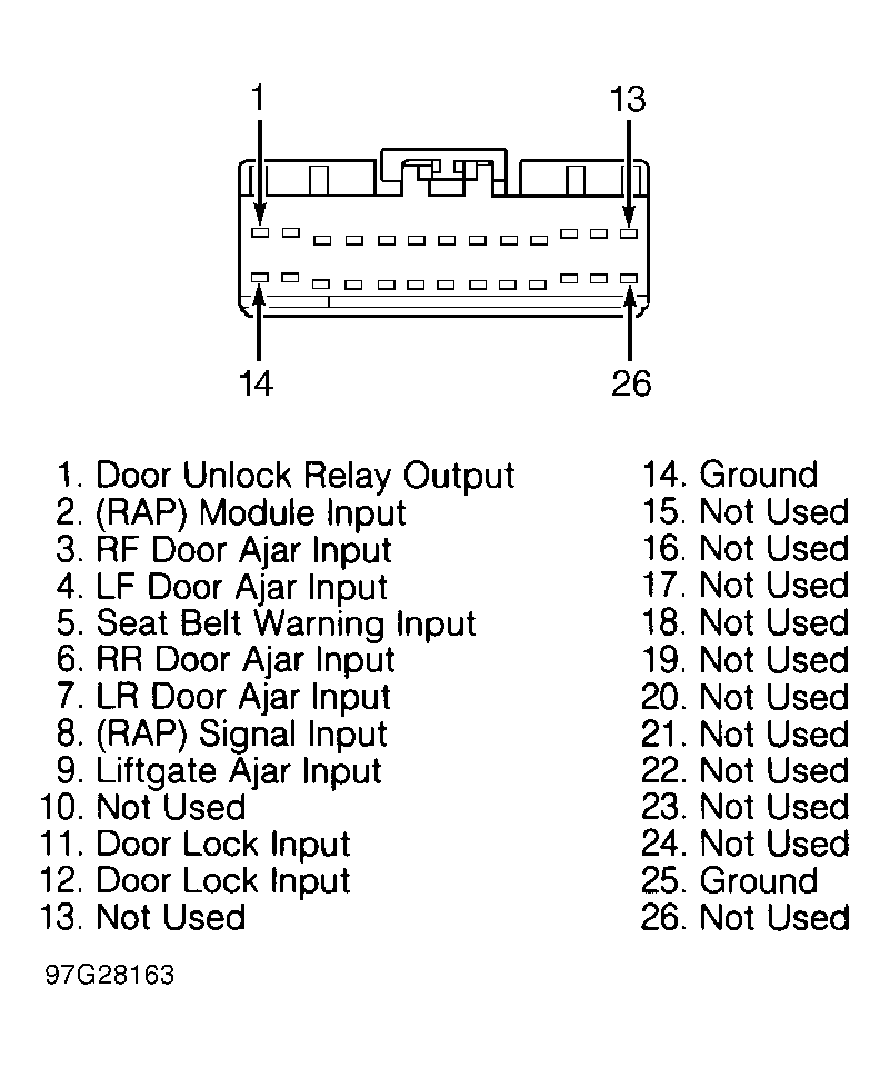 - If equipped with Remote Anti-Theft Personality (RAP), disconnect RAP module connector located under center of dashboard. Disconnect and reconnect ohmmeter as in step 1). If resistance reads more than one M/ohm, replace RAP module and retest. If resistance value differs, repair circuit No. 1001 (White/Yellow wire) for short to ground and repeat test.