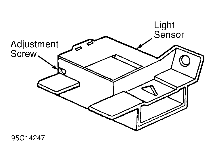 The light sensor amplifier assembly (located on top of dash, below defroster grill) is equipped with an adjustment screw. See Fig 1 . If earlier or later activation of headlights is desired, turning adjustment screw 1/16 turn counterclockwise will delay headlight activation an additional 15 minutes.