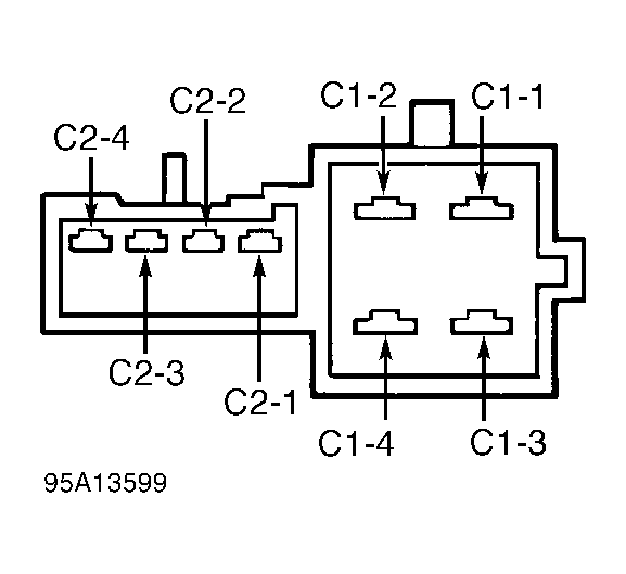 1. Each single switch contains a relay. To test switch, power and ground must be applied to switch relay. Using jumper wires, apply battery voltage to switch terminal C2-3 and ground to terminal C1-4. See Fig 1 .