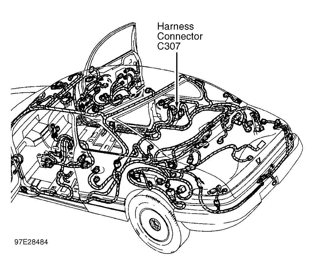 - Reinstall harness connector C214. Disconnect 16-pin harness connector C307. Harness connector C307 is located behind passenger's side rear panel. See Figure .