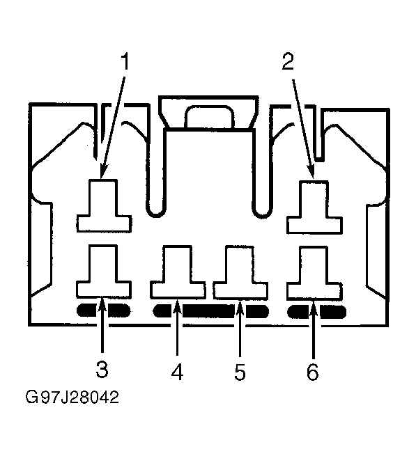 - Disconnect wiper/washer switch 6-pin connector. Turn ignition on. Measure voltage between ground and wiper/washer switch connector terminal No. 3 (Blue wire). See Fig 2 . If battery voltage is present, go to next step. If battery voltage is not present, repair Blue wire between wiper/washer switch connector and fuse block. See WIRING DIAGRAMS .