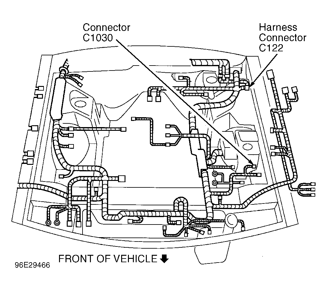 9. Disconnect Black 8-Pin connector C1030. Connector C1030 is located at left (driver's side) front corner of engine compartment. See Figure .