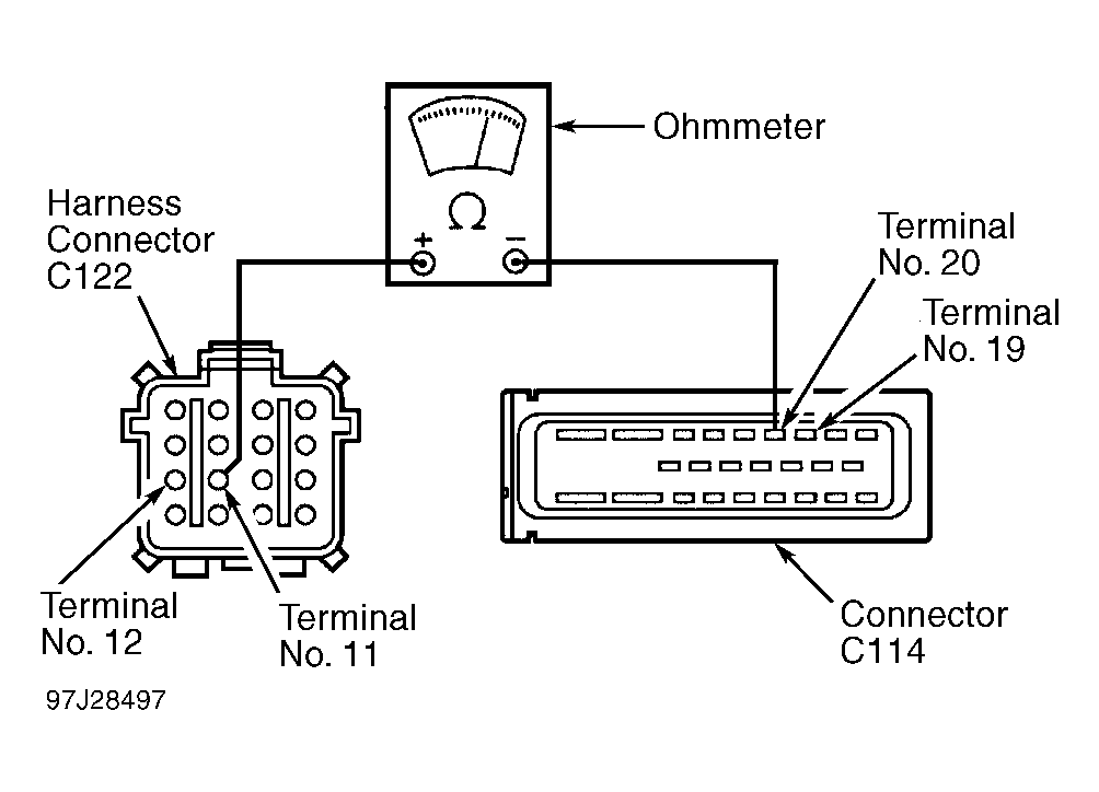 Fig 4: Checking Resistance Between Harness Connector C122 & Connector C114 & Identifying Terminals 19 & 20 On Connector C114