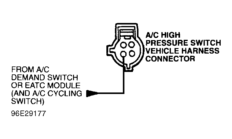 - 100) Check For Voltage To Cyclic Pressure Switch Disconnect A/C cycling switch. Turn ignition on. Turn A/C switch on. Measure voltage between A/C demand switch (or EATC module) side of A/C cycling switch wiring harness connector and negative battery terminal. If 10.5 volts or more are present, go to next step. If less than 10.5 volts are present, EEC-V system is okay. Fault is in A/C system.