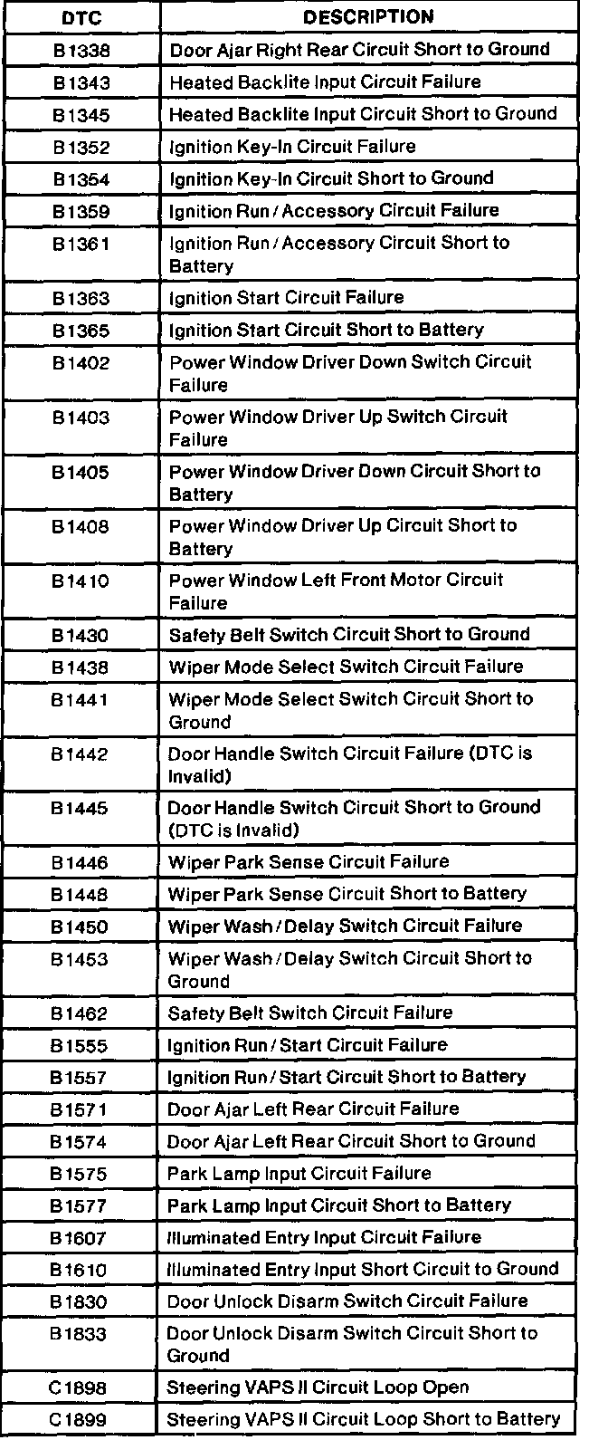 Diagnostic Trouble Code Descriptions