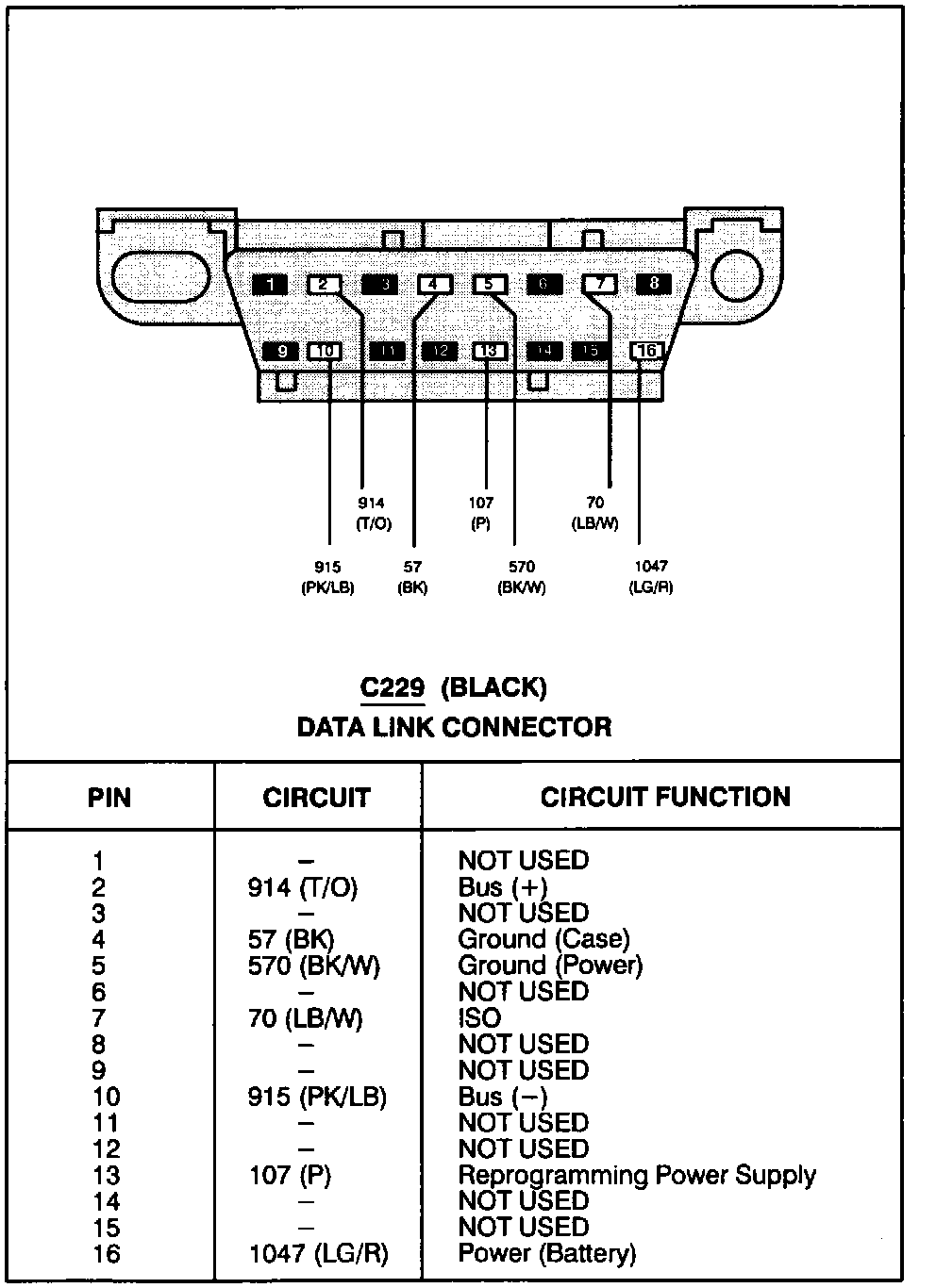 The OBD II Data Link Connector (DLC) is rectangular in design and capable of accommodating up to 16 terminals. The connector has keying features to allow easy connection. The vehicle connector and the test equipment connector have latching features that ensure the test equipment connector will remain mated when properly connected.