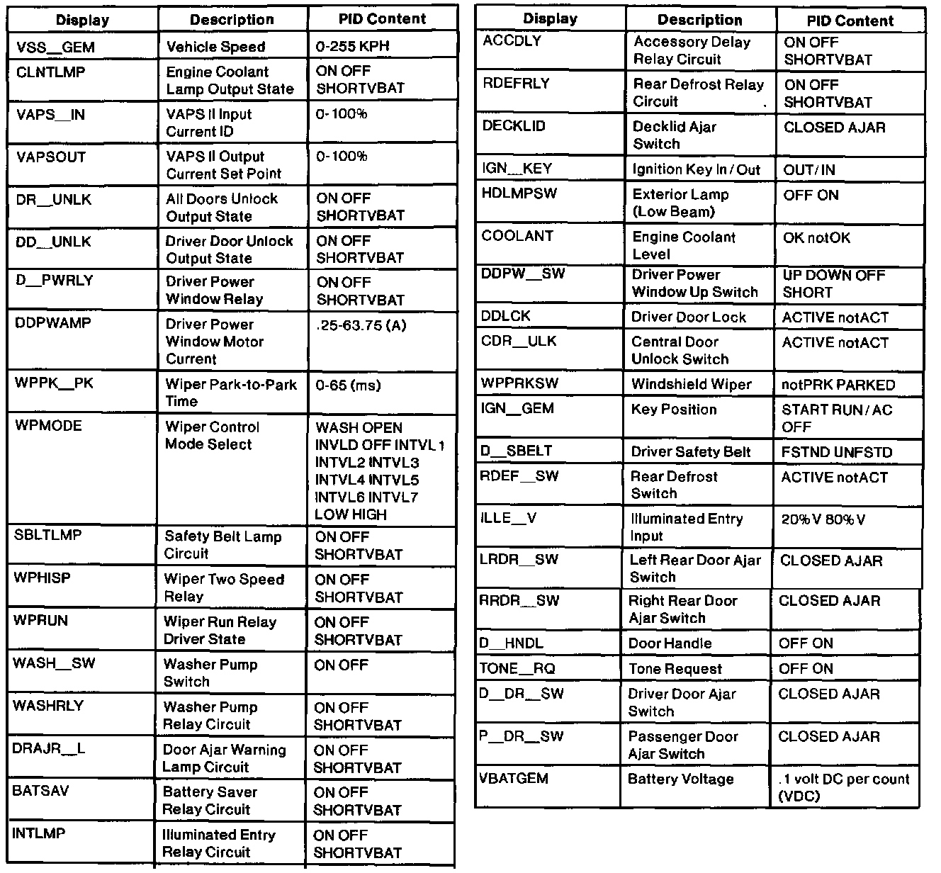 Diagnostic Trouble Code Descriptions