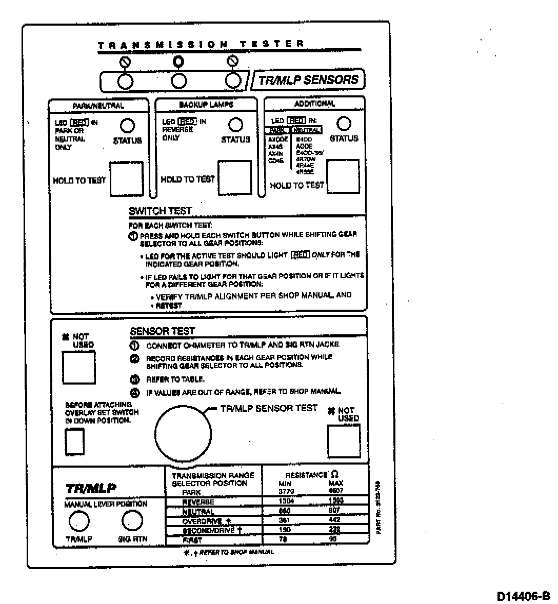 Rotunda TR/MLP Sensor Tester Overlay: