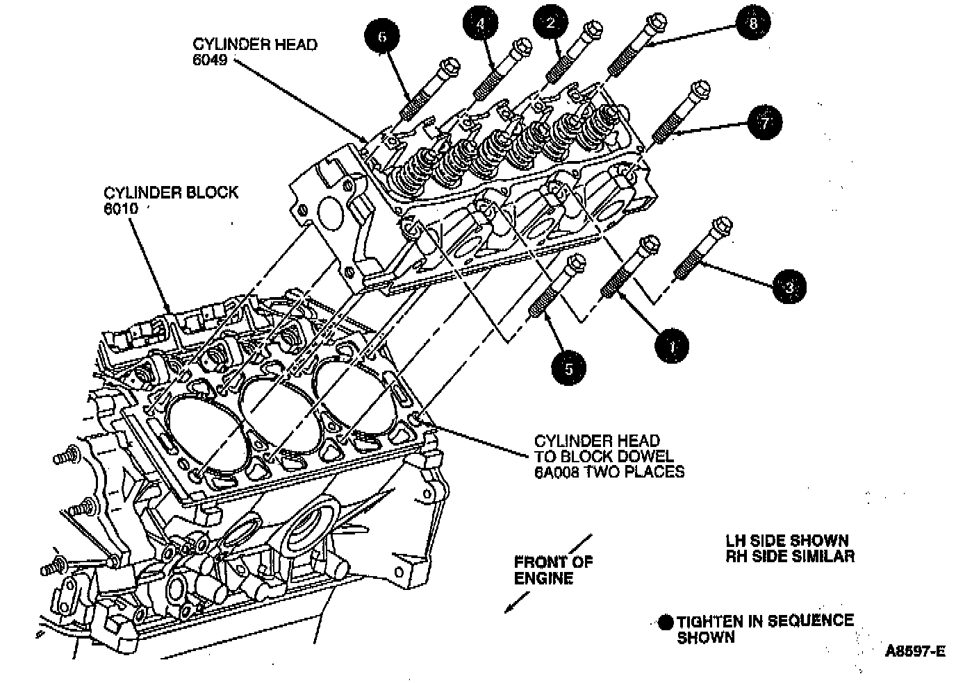 Install NEW cylinder head retaining bolts and tighten in sequence in four steps: