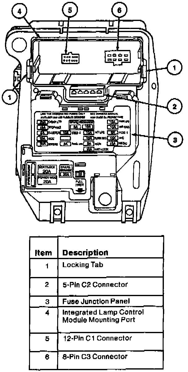 1. Reach behind the fuse junction panel and disconnect connector by pressing the lock tabs and pulling connector.